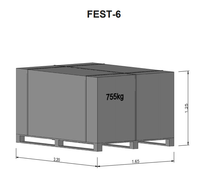 FEST-6 – kuuekandiline, põrandapind 6 m², välismõõtmed 2,56 × 2,96 m, seina kõrgus 2 m, harja kõrgus 2,6 m