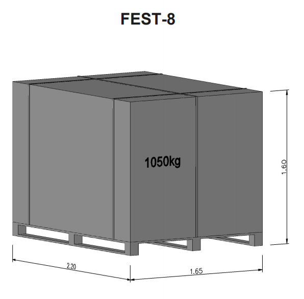 FEST-8 – kaheksakandiline, põrandapind 9,5 m², välismõõtmed 3,29 × 3,29 m, seina kõrgus 2 m, harja kõrgus 2,8 m